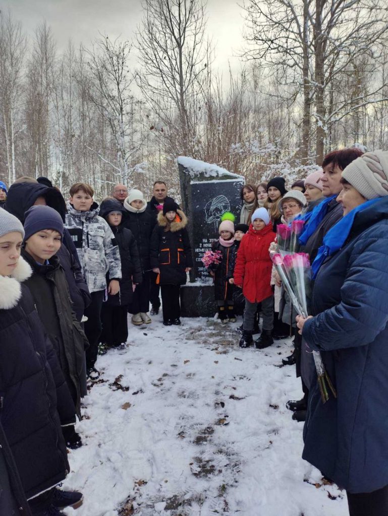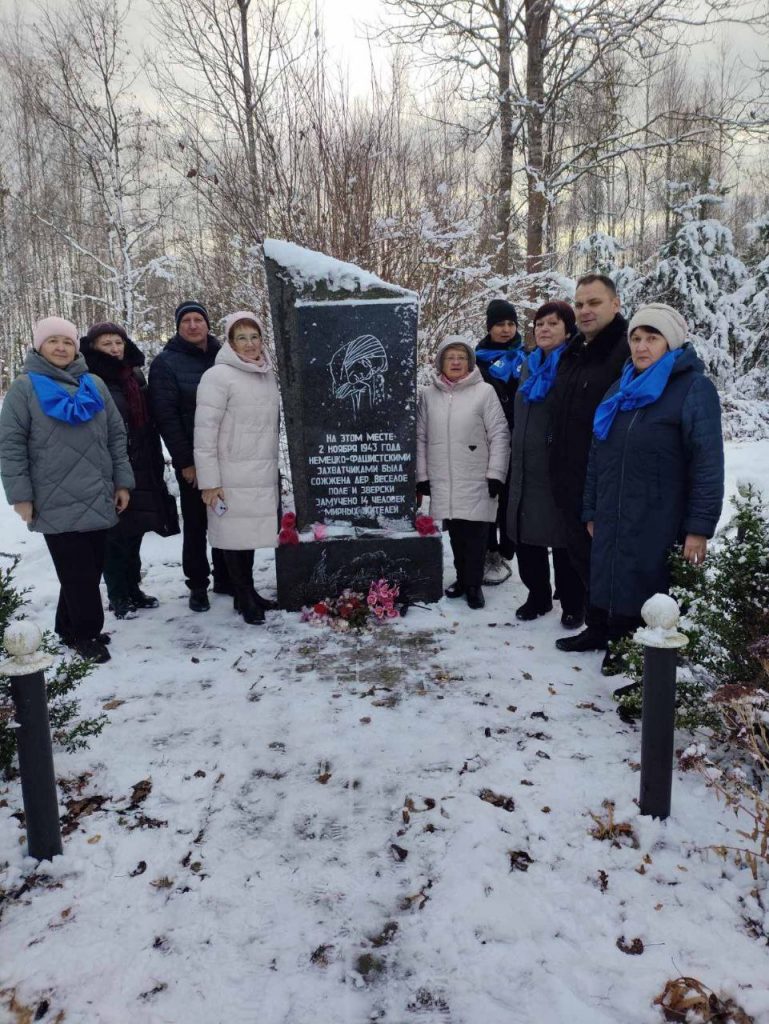26 ноября 2024 работники и учащиеся нашей школы приняли участие в минуте молчания и возложении цветов на месте спаленной деревни Весело Поле.